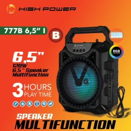 Rp 4.223.000HIGH POWER Speaker 777 B 6,5 inch 1 Bluetooth Portable Meeting Wireless SPESIFIKASI Wireless transmission rang : up to 10 meter Speaker drive size : 6.5 inch Output Power : 5W Frequency response : 80Hz – 16KHz Signal to noise ratio : >= 80dB FM scan rang : 87.5 – 108MHz USB charging : DC5V… selengkapnya